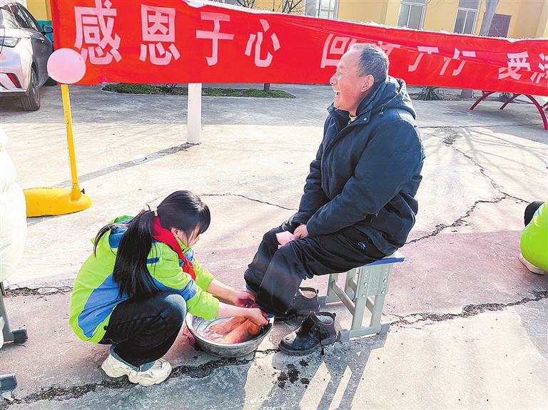活动上安全股票配资门户,校长王松江号召同学们看看爷爷奶奶的皱纹、想想爸爸妈妈的辛苦,把“感恩”化作“认真完成作业”和“回家递一杯水”这样的具体行动。各年级同学纷纷登台表演,歌曲《感恩的心》《父亲》等节目轮番上演。感恩教育主题活动的高潮时刻是向上辈鞠躬和为长辈洗脚。(张鸿飞/文 王松江/图)